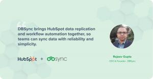 “HubSpot powers how growing businesses connect with their customers. DBSync’s latest release helps those teams go further, by bringing HubSpot data replication and workflow automation together for analytics and day-to-day operations across sales, marketing, and finance systems. We’re building DBSync to give growing companies true data freedom, combining enterprise reliability with the simplicity of SaaS.” said Rajeev Gupta, CEO of DBSync